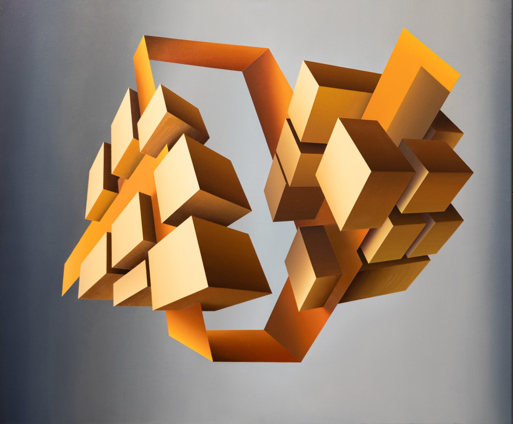 "A festmény a folytonosságot és a pillanatba sűrített örökkévalóságot helyezi a középpontba. A képen a geometriai absztrakció eszköztárával teszek kísérletet a megfoghatatlan idő és a szubjektív tapasztalás rögzítésére. A perspektívák tengelyén nem csupán egy vizuális játékot láthatunk a térrel, hanem egy filozofikus meditációt az emberi létezés irányairól.
